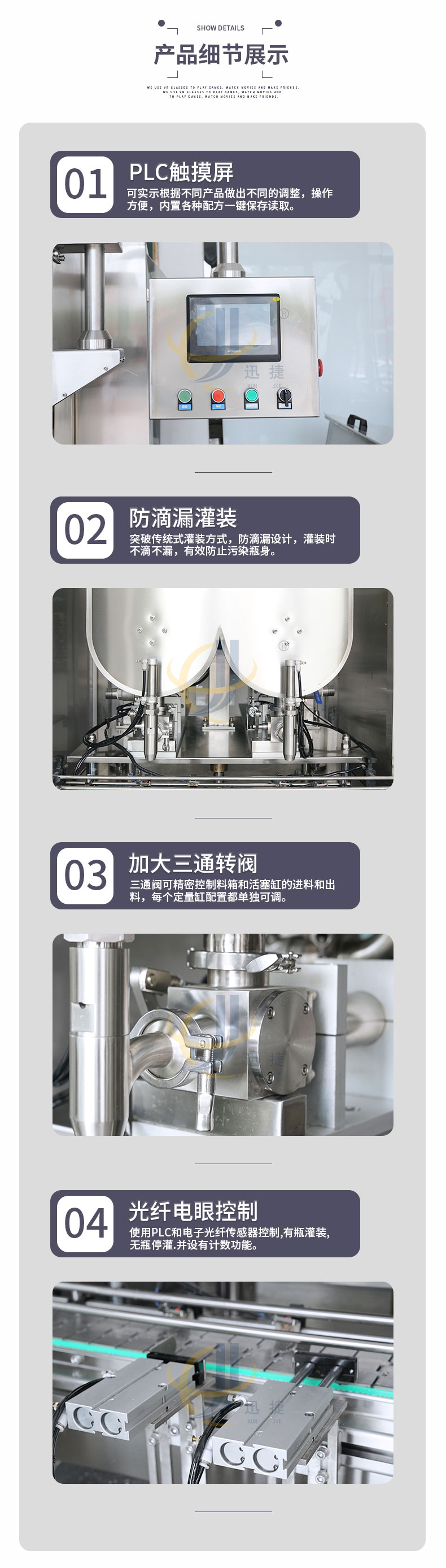 雙頭高速醬料灌裝機(jī)適用于調(diào)味品中帶顆粒并且濃度較大的辣椒醬、豆瓣醬、花生醬、香菇醬、果醬、牛油火鍋底料。