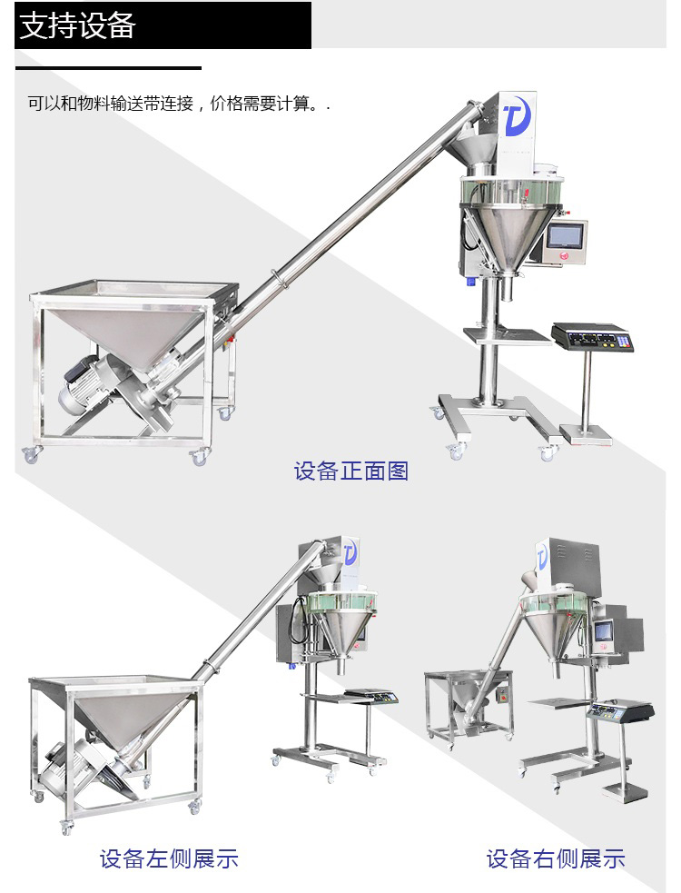 D、包裝范圍寬:同一臺(tái)定量包裝機(jī)在5-5000g內(nèi)通過電子秤鍵盤調(diào)整及更換不同規(guī)格的下料螺旋連續(xù)可調(diào)