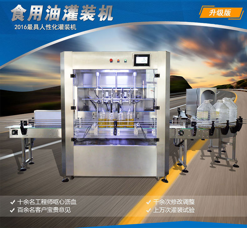 產(chǎn)品簡介:全自動玉米油灌裝機是全自動油類灌裝設備中比較特殊的一種,是根據(jù)玉米油的的特殊品質(zhì)而量身打造的專門用來灌裝玉米油類產(chǎn)品的全自動灌裝機械。該設備采用先進的定量灌裝技術,將微電子智能控制技術與程序控制應用于本灌裝機,使之成為機電一體化的新型產(chǎn)品。